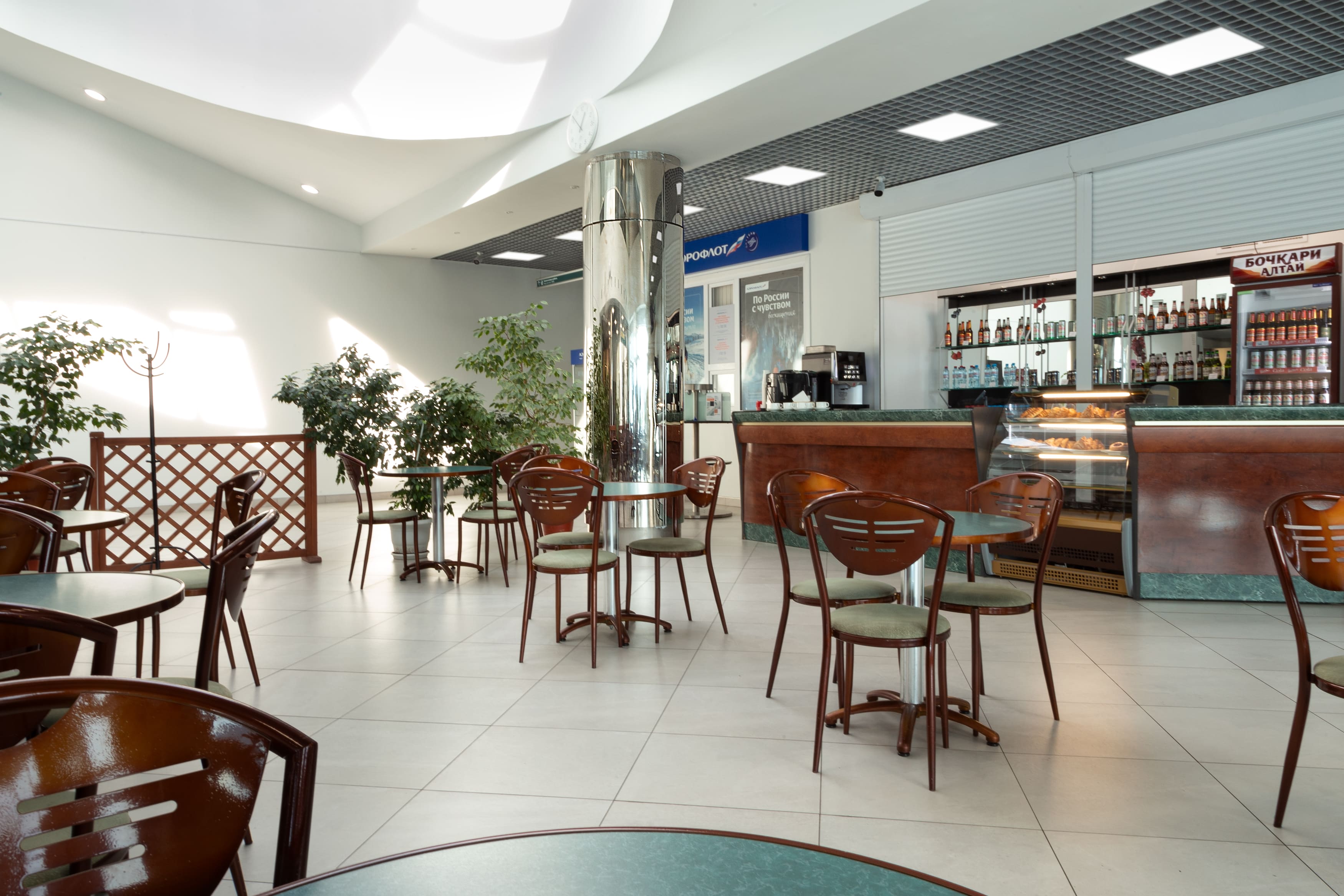 В ожидании вылета пассажиры международного аэропорта Ханты-Мансийск могут отдохнуть и перекусить в уютном кафе-баре «Орхидея» на втором этаже здания аэровокзала.